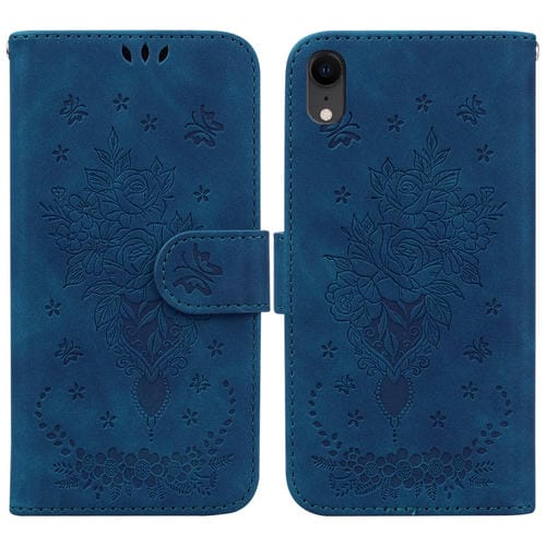 Estuche para Teléfono iPhone Xr Butterfly Rose Cuero en Relieve (Azul)