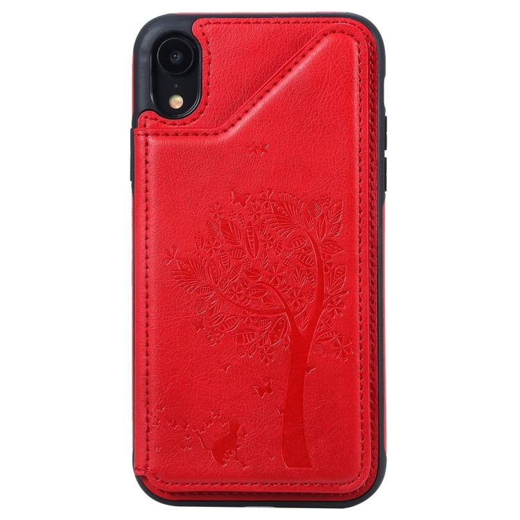 Estuche protector para iPhone Xr Cat Tree con patrón en relieve, ranuras para tarjetas y marco de fotos (Rojo)