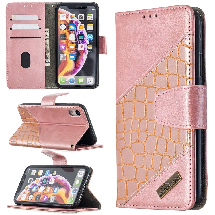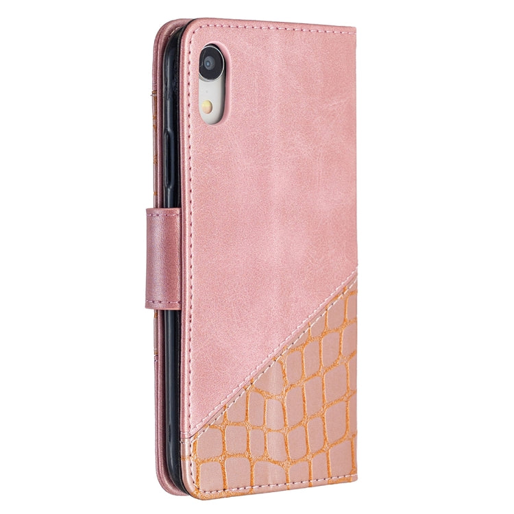 Funda para iPhone Xr Cuero PU Textura Cocodrilo Tapa Horizontal Billetera Soporte Ranuras para Tarjetas (Oro Rosa)