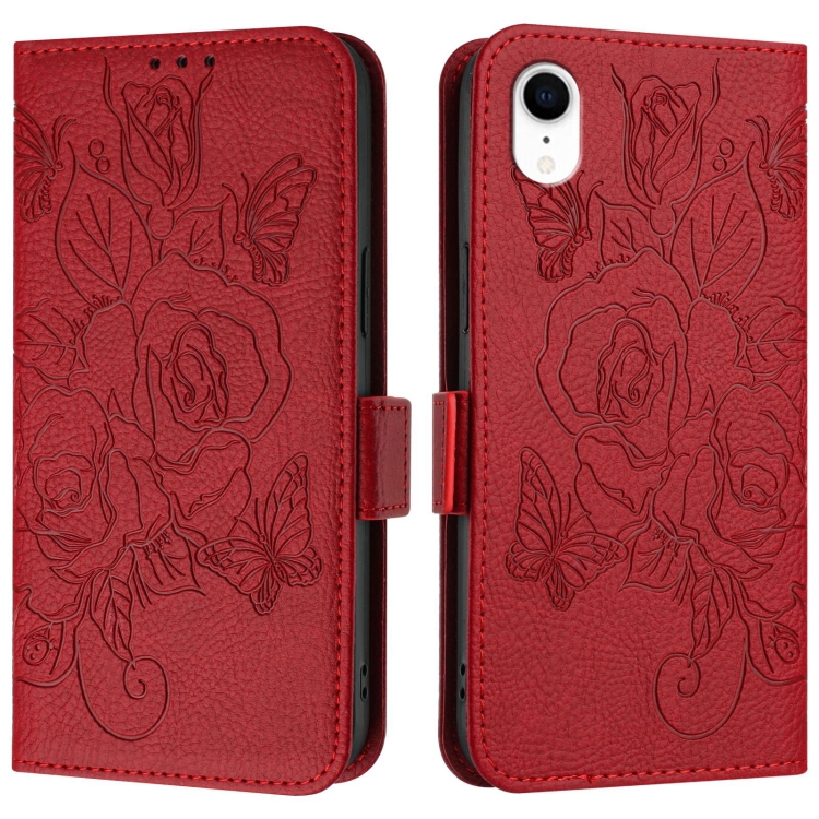 Estuche para Teléfono iPhone Xr Cuero Antirrobo RFID Rosa en Relieve (Rojo)