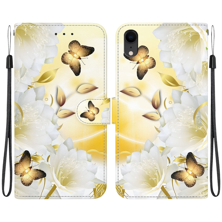 Funda de cuero para iPhone Xr con dibujo coloreado y textura de cristal (Epiphyllum de Mariposa Dorada)