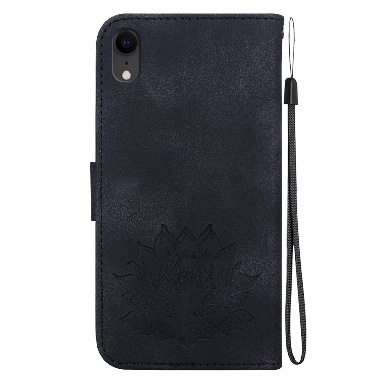 Funda de Cuero para iPhone Xr con Relieve de Loto (Negro)