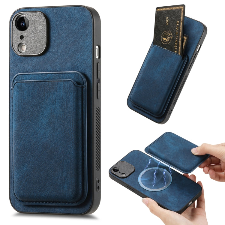 Funda de Teléfono para iPhone Xr Magnética con Bolso de Tarjeta de Cuero Retro (Azul)