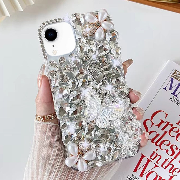 Funda para Teléfono iPhone Xr con Incrustaciones de Diamantes y Mariposas Hecha a Mano (Blanco)