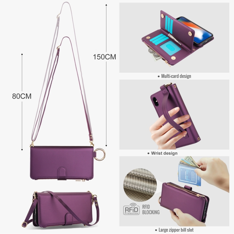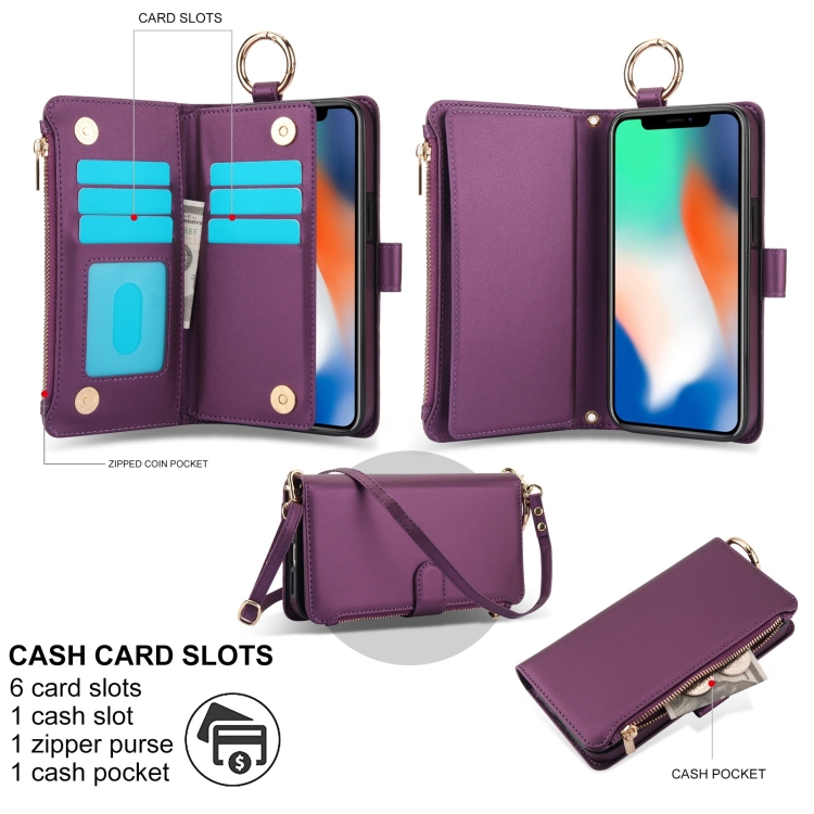 Funda para Teléfono iPhone Xr Cuero Billetera Multifuncional Anillo Cruzado (Púrpura Oscuro)