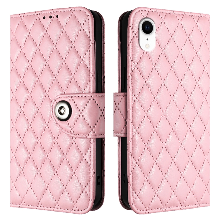 Funda para Teléfono iPhone Xr Cuero con Tapa Textura Rómbica y Cordón (Rosa)
