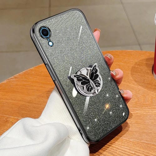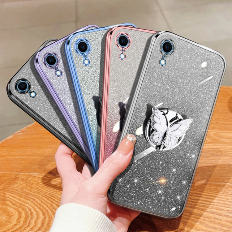 Funda para Teléfono TPU iPhone Xr Soporte Mariposa Brillo Degradado (Negro)
