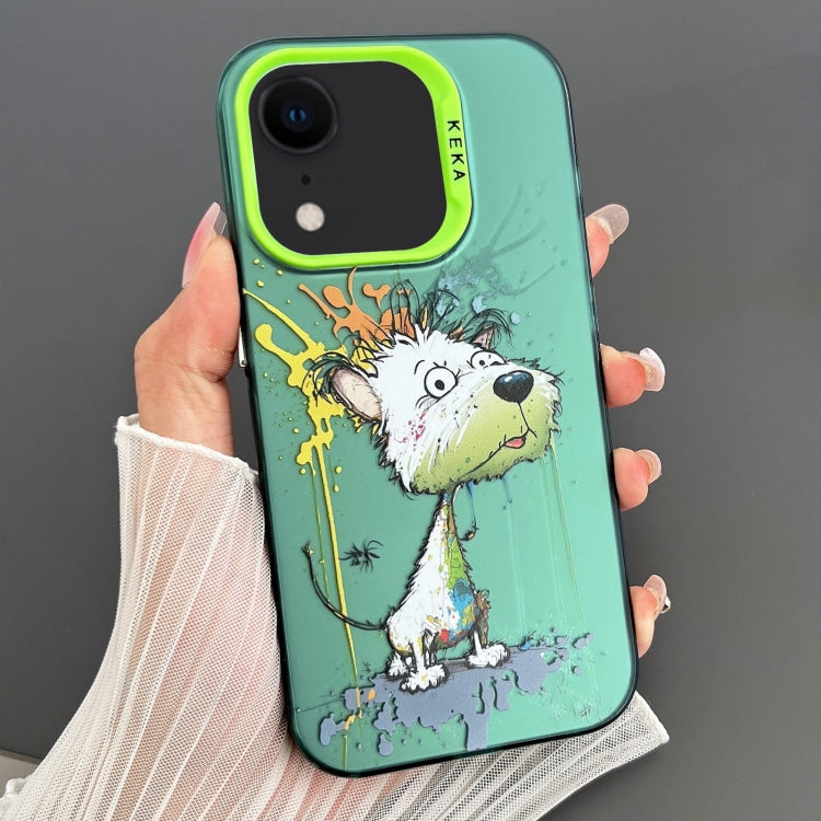Funda para Teléfono iPhone Xr Imd Animal Graffiti TPU + PC Doble Cara (Perro Verde Blanco Derretido)