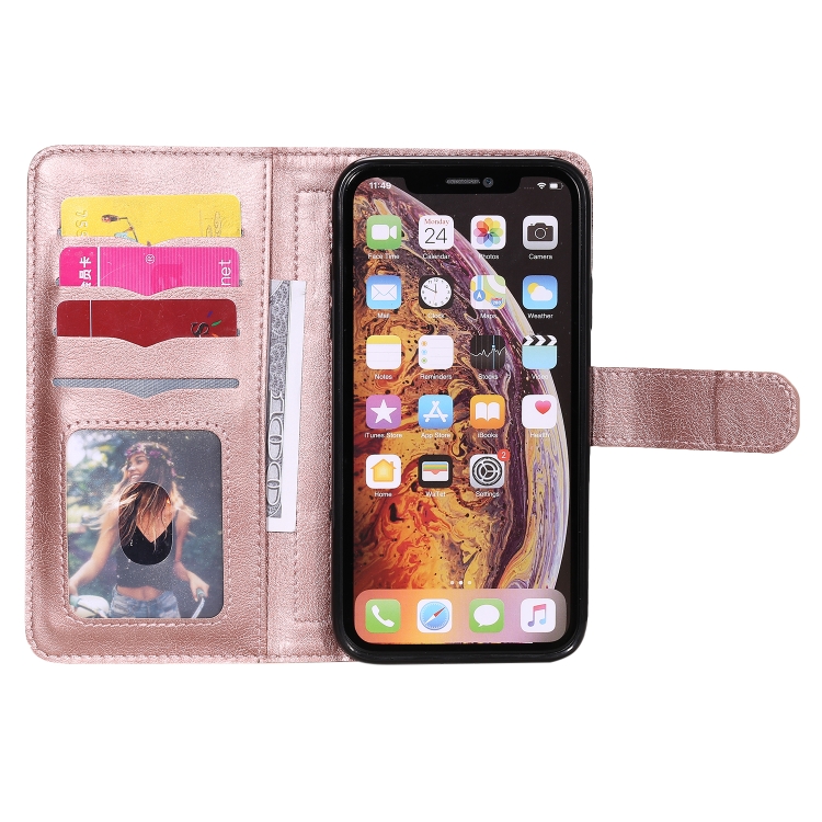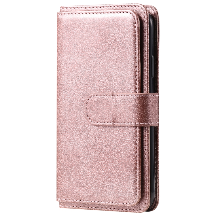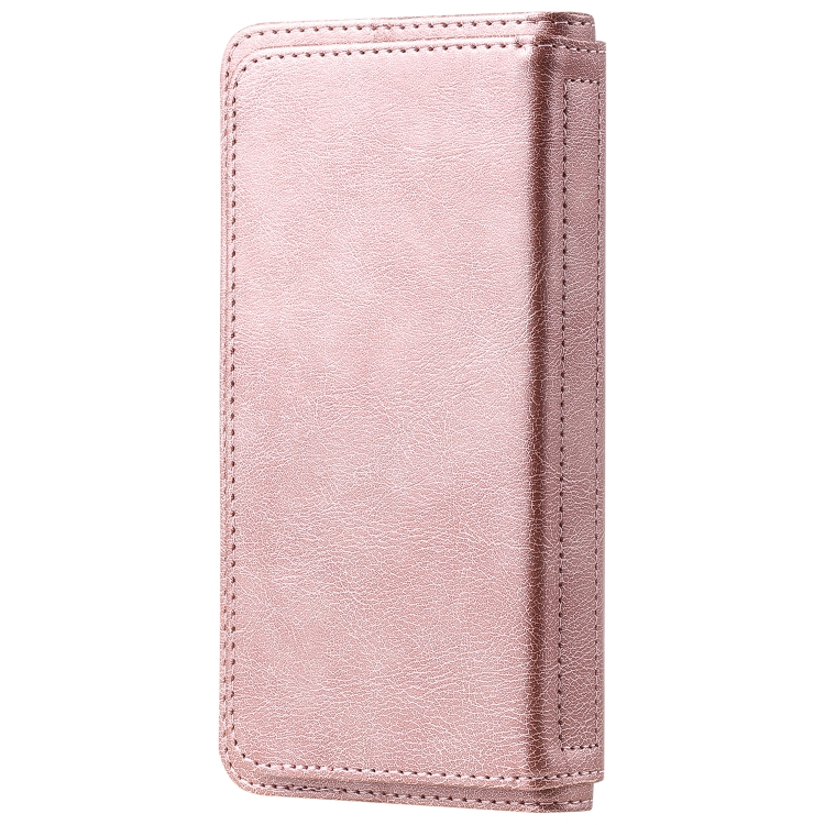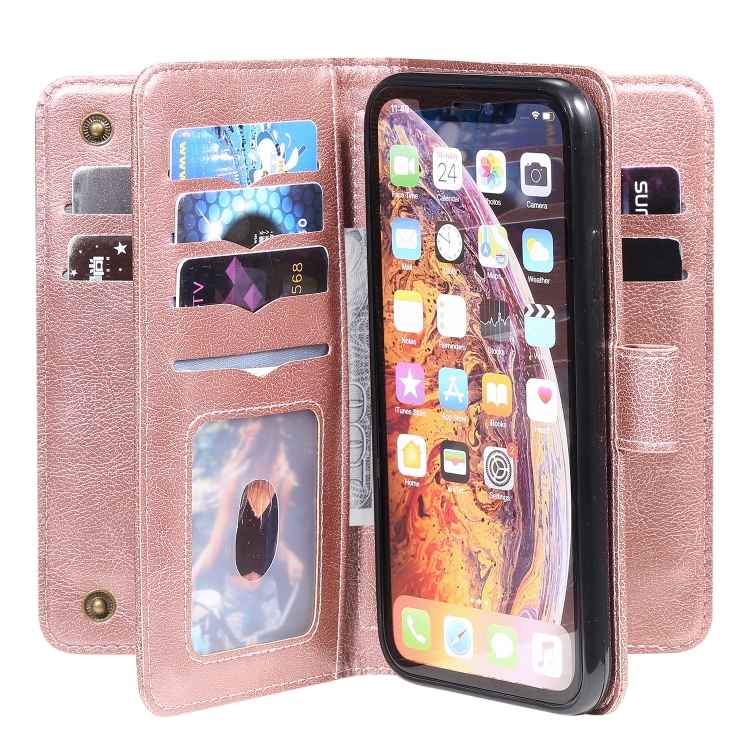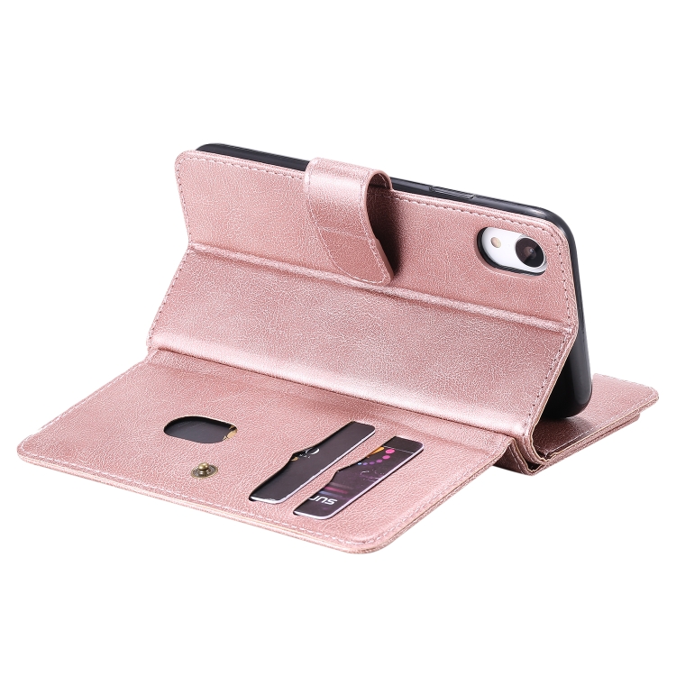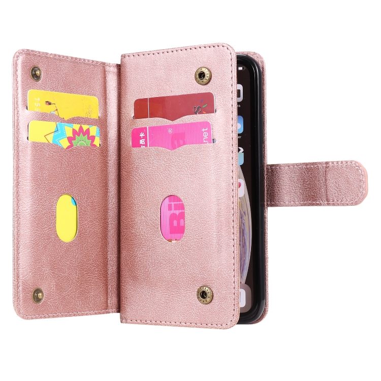 Funda de Cuero para iPhone Xr con Hebilla de Cobre Magnética Multifuncional Tapa Horizontal 10 Ranuras (Oro Rosa)