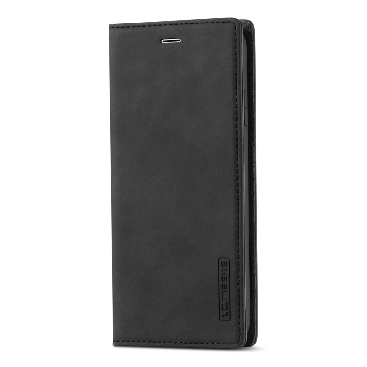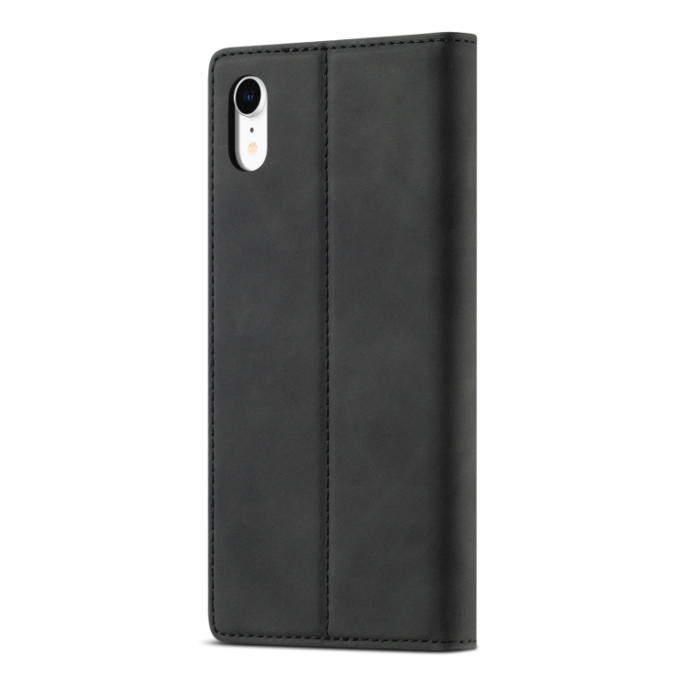 Funda para iPhone Xr Lc.Imeeke Flip Horizontal Ultrafino Magnetismo Fuerte TPU + PU con Soporte y Ranuras para Tarjetas (Negro)