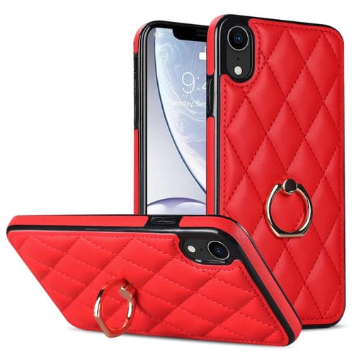 Funda para iPhone Xr Rhombic PU Cuero con Soporte para Anillo (Rojo)