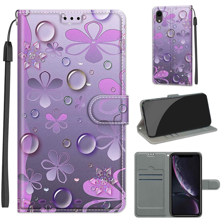 Funda para iPhone Xr Cuero de PU Cierre Magnético Soporte y Ranuras para Tarjetas (C16 Gota de Agua Flor de Seis Pétalos)