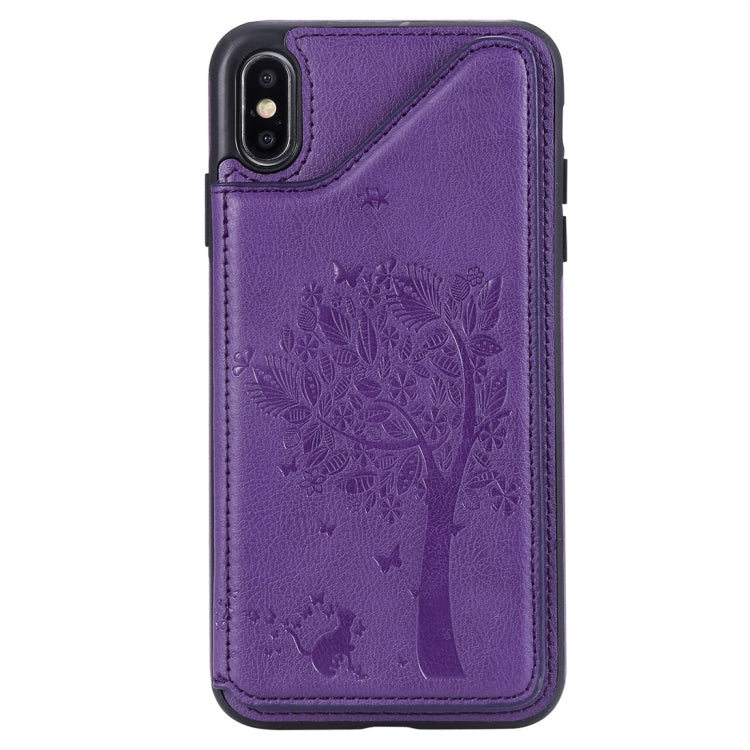 Estuche protector iPhone Xs Max Cat Tree relieve patrón con ranuras para tarjetas (Púrpura)