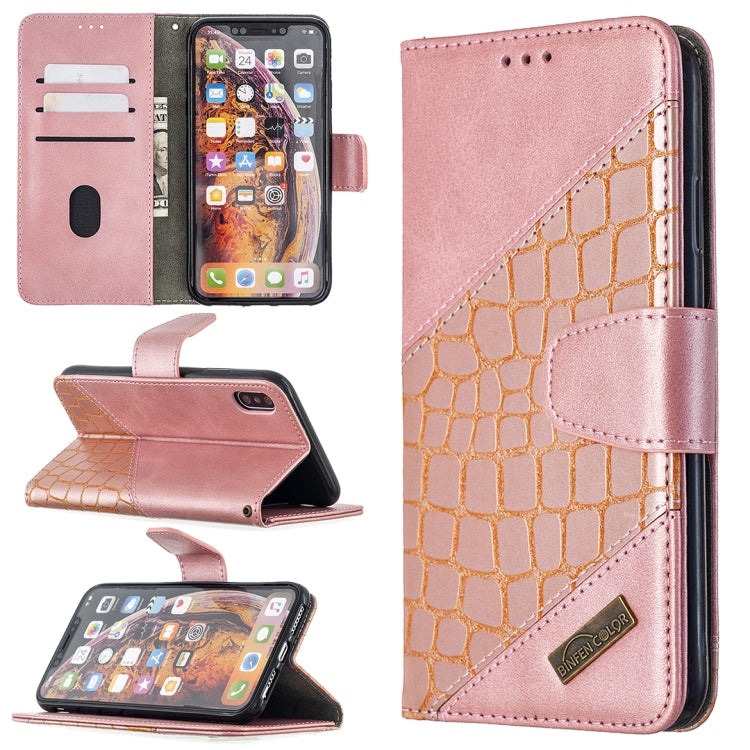 Funda para iPhone Xs Max Cuero de PU Textura Cocodrilo con Tapa Horizontal Billetera Soporte y Ranuras para Tarjetas (Oro Rosa)