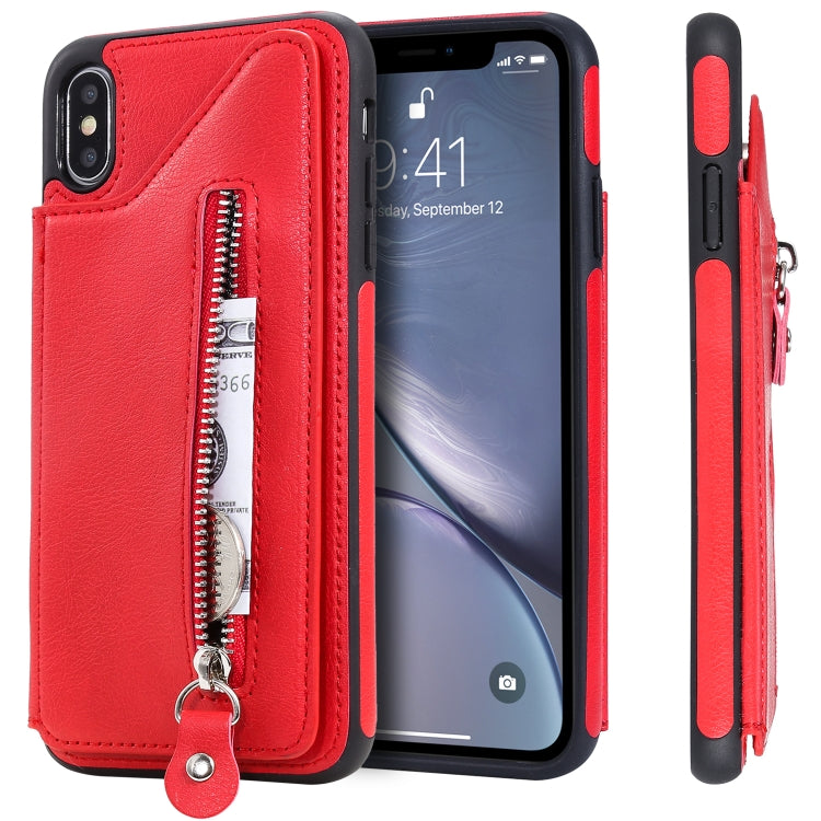Funda Protectora para iPhone Xs Max Doble Hebilla Cremallera a Prueba de Golpes (Rojo)