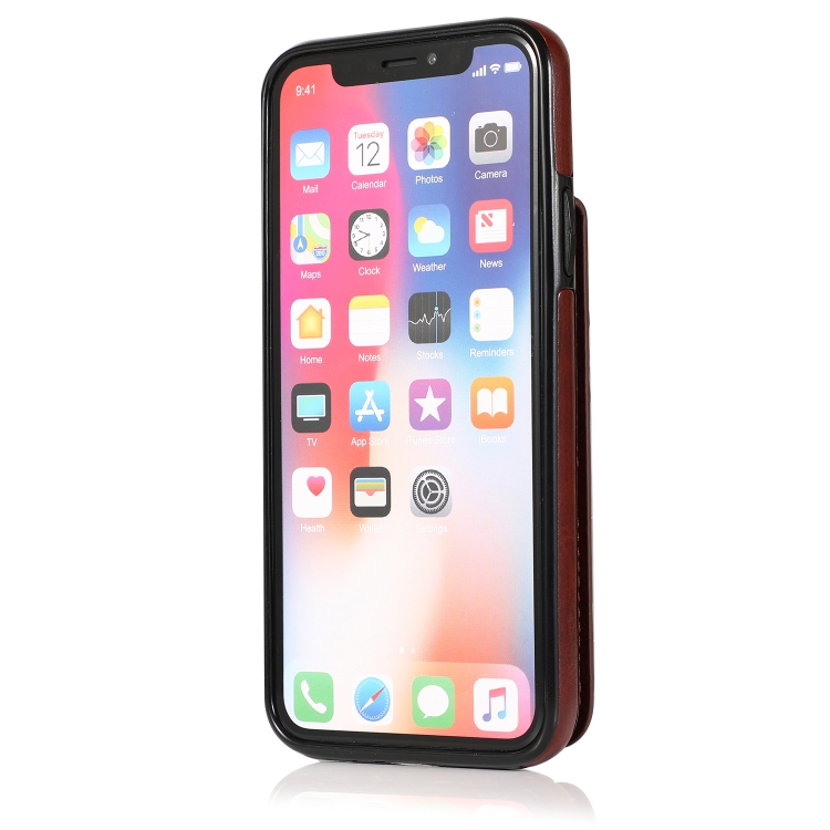 Funda para iPhone Xs Max PC + TPU con Soporte y Ranuras para Tarjetas (Marrón)