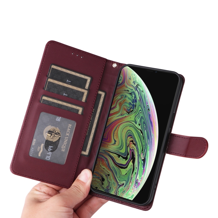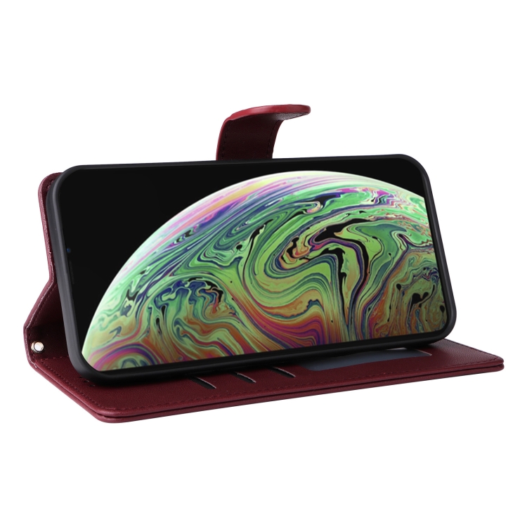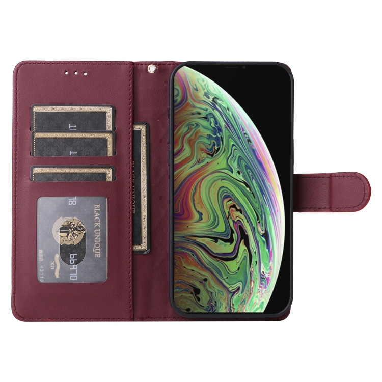 Funda para iPhone Xs Max Diamond Lattice de Cuero con Tapa (Rojo Vino)