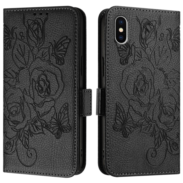 Estuche para teléfono iPhone Xs Max cuero antirrobo RFID rosa en relieve (Negro)