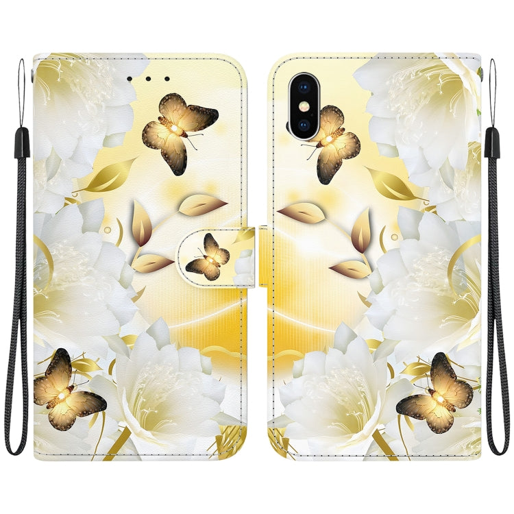 Funda para iPhone Xs Max Cuero Dibujo Coloreado Textura de Cristal (Epiphyllum Mariposa Dorada)