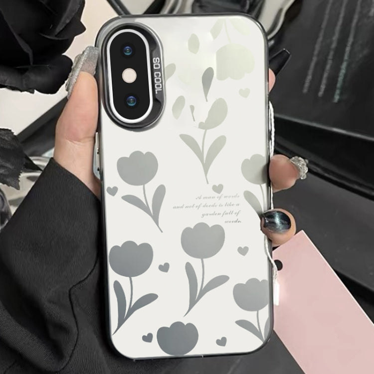 Funda híbrida para iPhone Xs Max TPU con pintura plateada para PC (Tulipanes huecos negros)