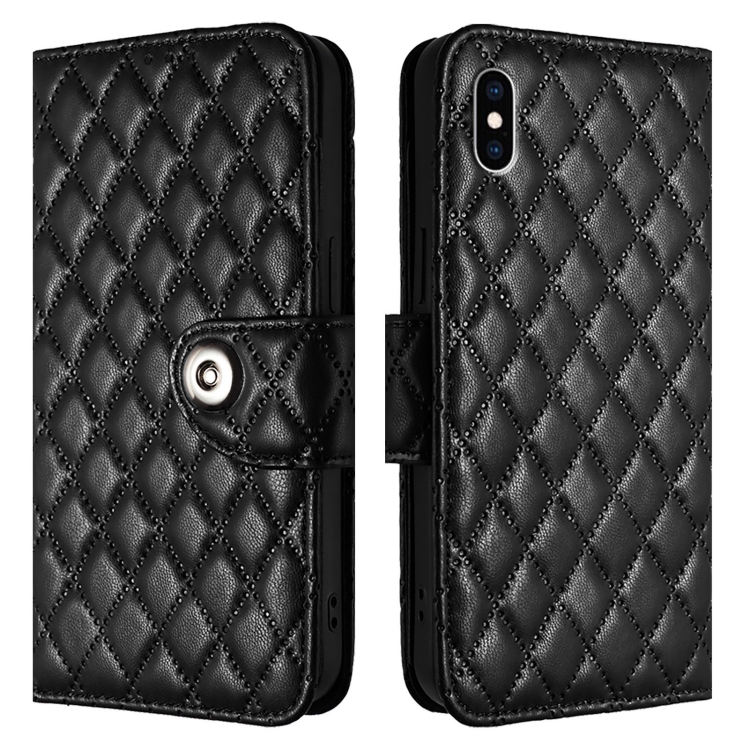 Funda para Teléfono iPhone Xs Max Tapa Cuero Textura Rómbica Cordón (Negro)