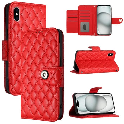 Funda para Teléfono iPhone Xs Max Cuero con Tapa Textura Rómbica y Cordón (Rojo)