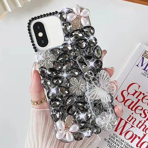 Funda para Teléfono iPhone Xs Max PC con Incrustaciones de Diamantes y Mariposas (Negro)