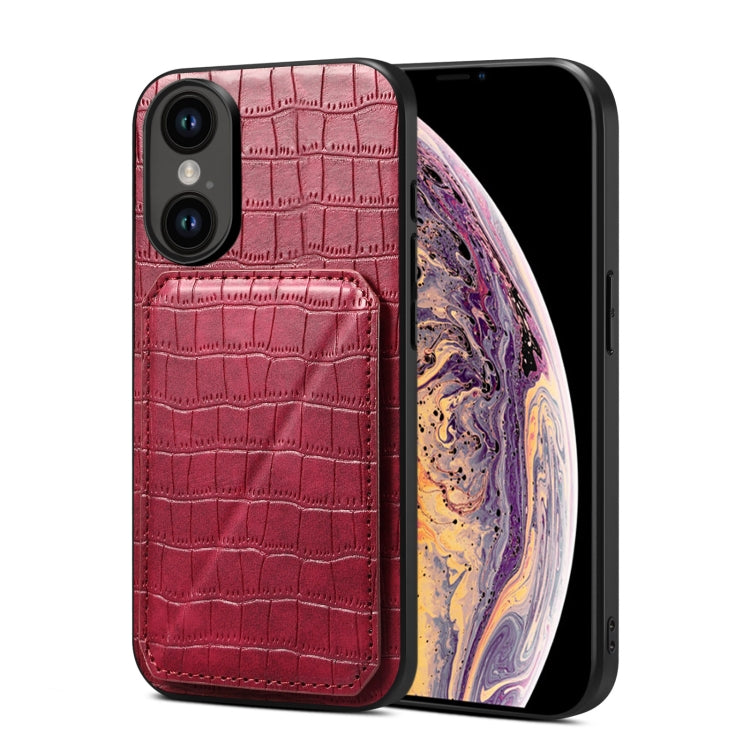 Funda Trasera iPhone Xs Max Piel de Cocodrilo Imitación con Soporte (Rojo Rosa)