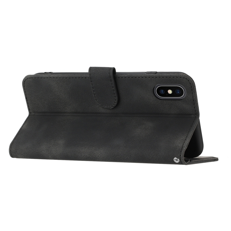 Funda para iPhone Xs Max Skin Feel Leather con patrón de corazones (Negro)