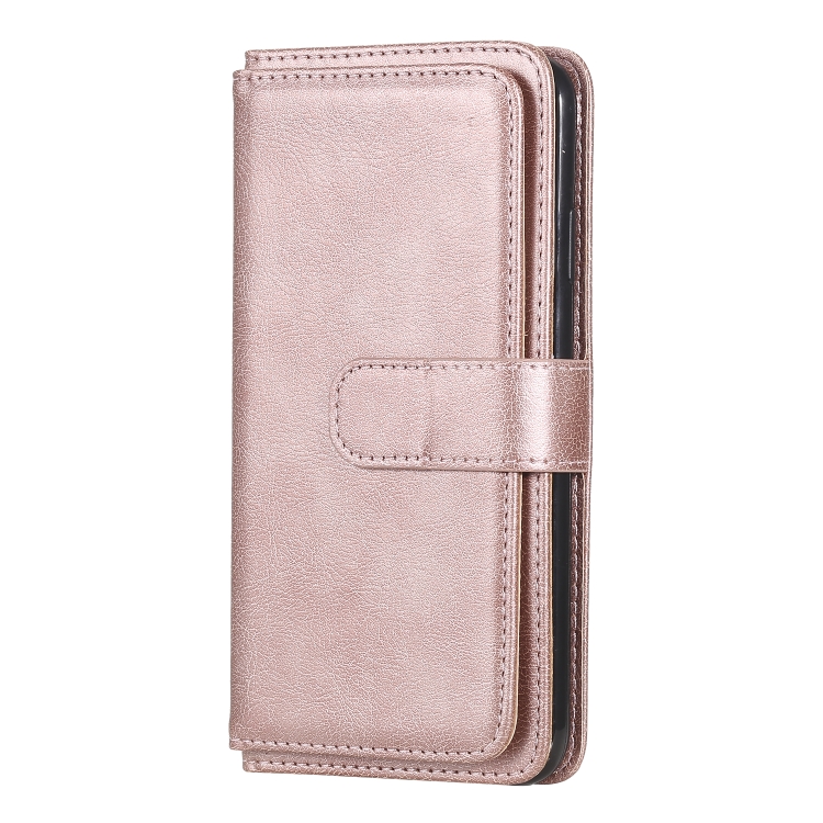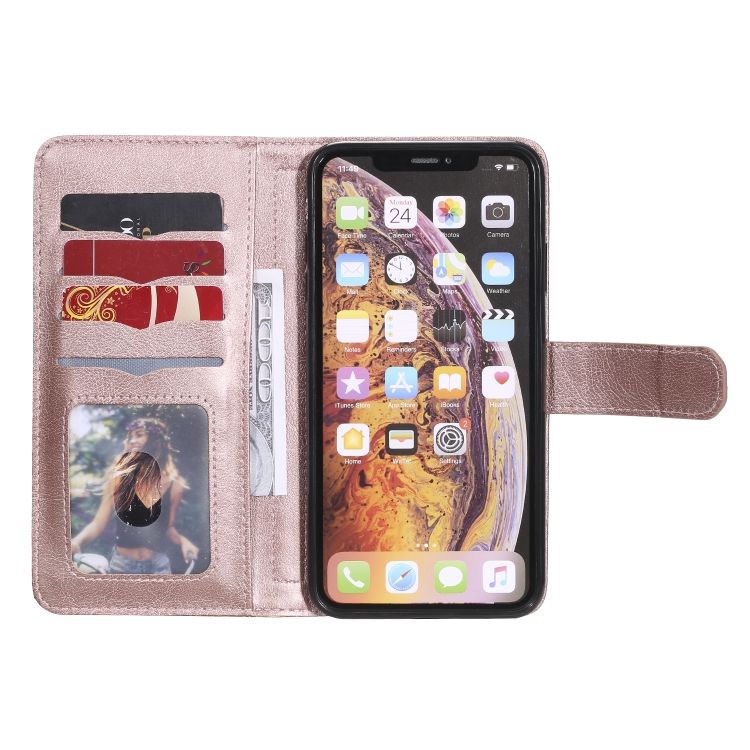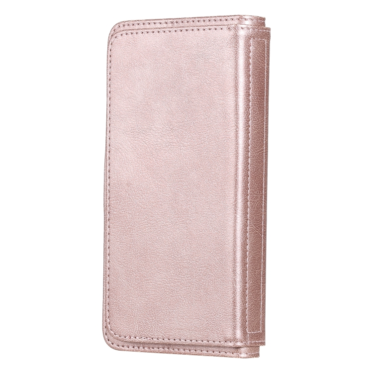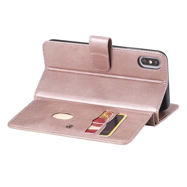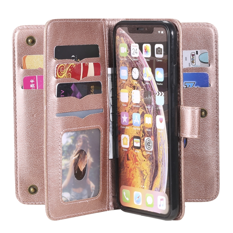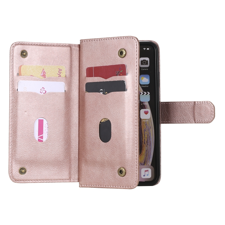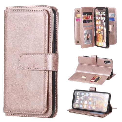Funda para iPhone Xs Max Hebilla de Cobre Magnética Multifuncional con Tapa Horizontal y 10 Ranuras (Oro Rosa)