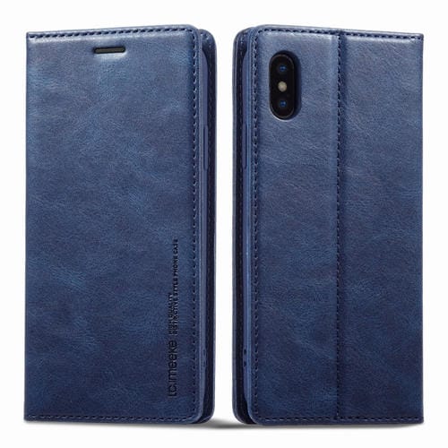 For iPhone XS Max LC.IMEEKE RFID Anti-Theft Leather Phone Case (Blue)