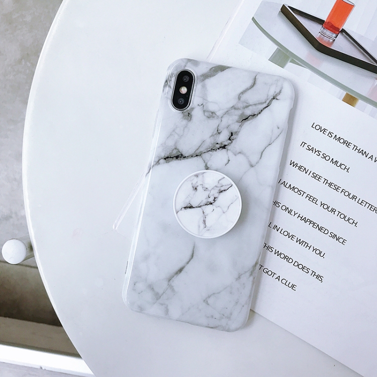 Funda para iPhone Xs Max Marble TPU Protection Contraportada con Soporte Plegable (Blanco)