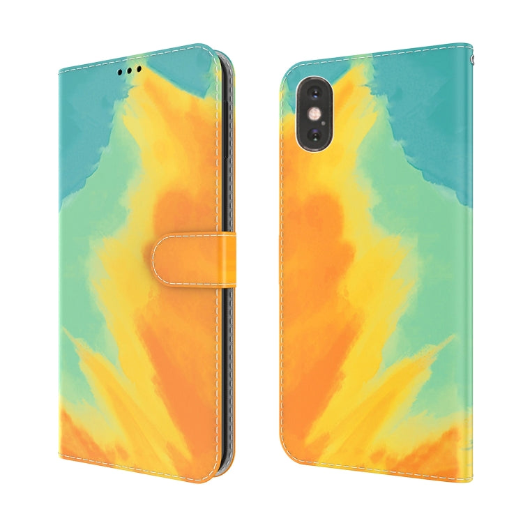 Estuche de Cuero para iPhone Xs Max Patrón de Acuarela Tapa Horizontal Soporte Ranura para Tarjeta y Billetera (Hoja de Otoño)