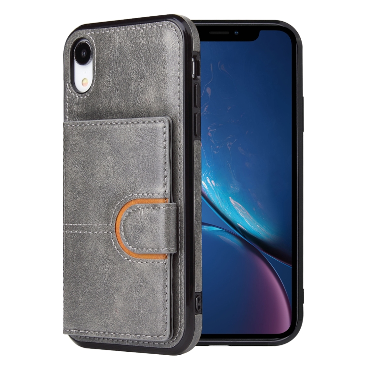 Funda Trasera para iPhone Xs Max Pu + TPU + PC a Prueba de Golpes con Ranura para Tarjeta y Soporte (Gris)