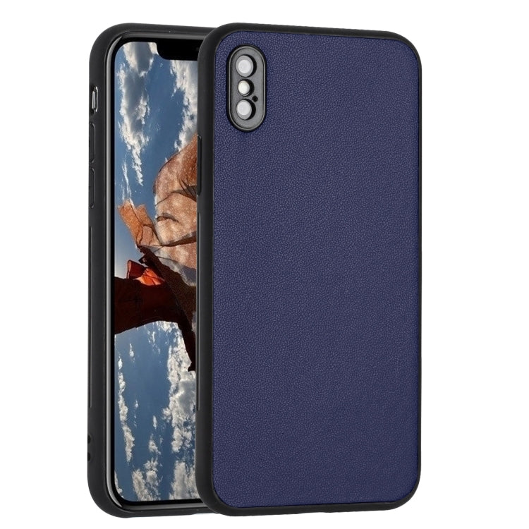 Funda para iPhone Xs Max R20 Individual con Patrón de Cuero (Azul)
