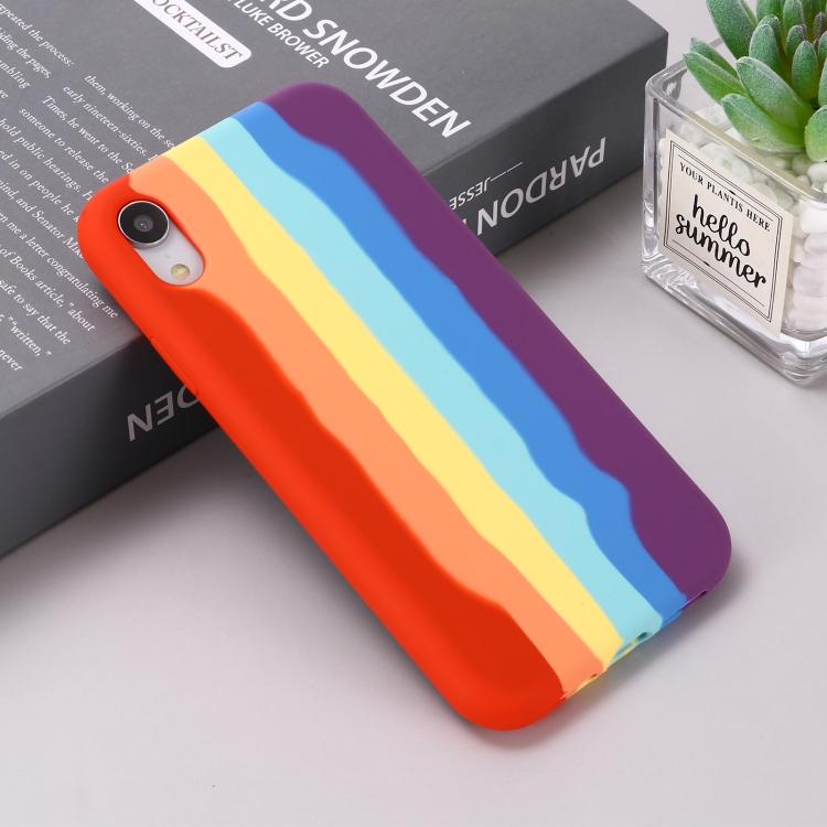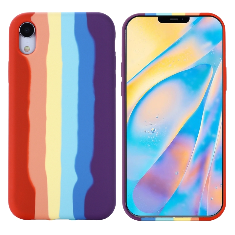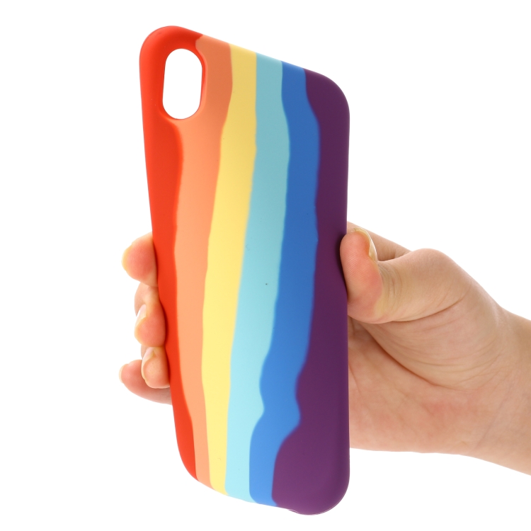 Funda Protectora para iPhone Xs Max Rainbow Liquid Silicone Cobertura Total a Prueba de Golpes