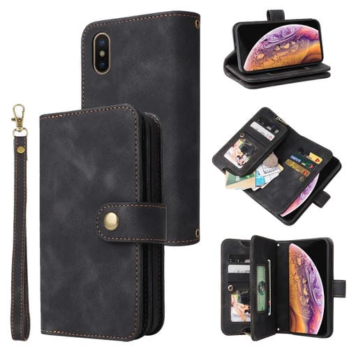 Funda para iPhone Xs Max Ranura para Tarjeta Multifuncional con Cremallera Cuero (Negro)