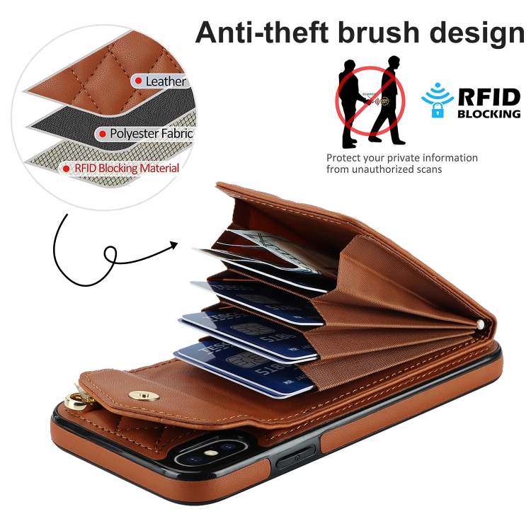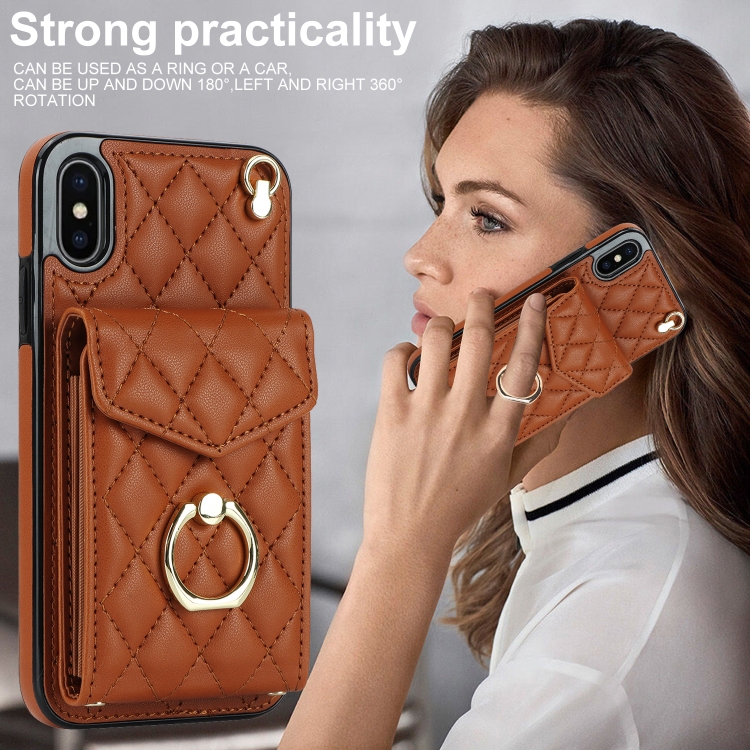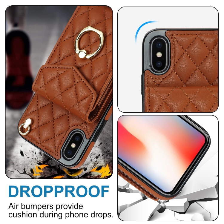 Funda para Teléfono iPhone Xs Max Rhombic Texture Card Bag con Cordón Largo (Marrón)