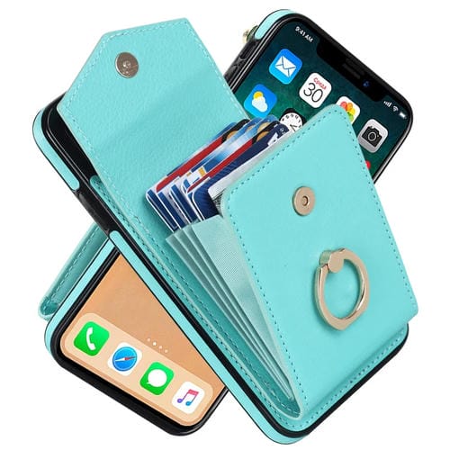 Funda para iPhone Xs Max Ring Holder con Ranura para Tarjeta RFID (Verde Menta)