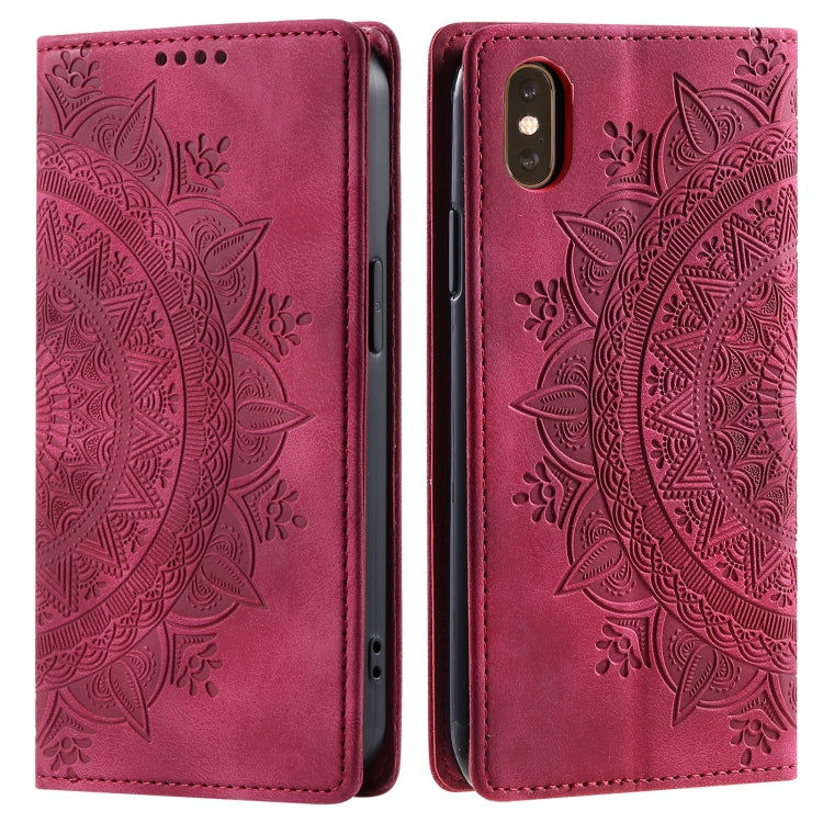 Funda de Cuero Magnética Totem para iPhone Xs / S en Relieve (Rojo)