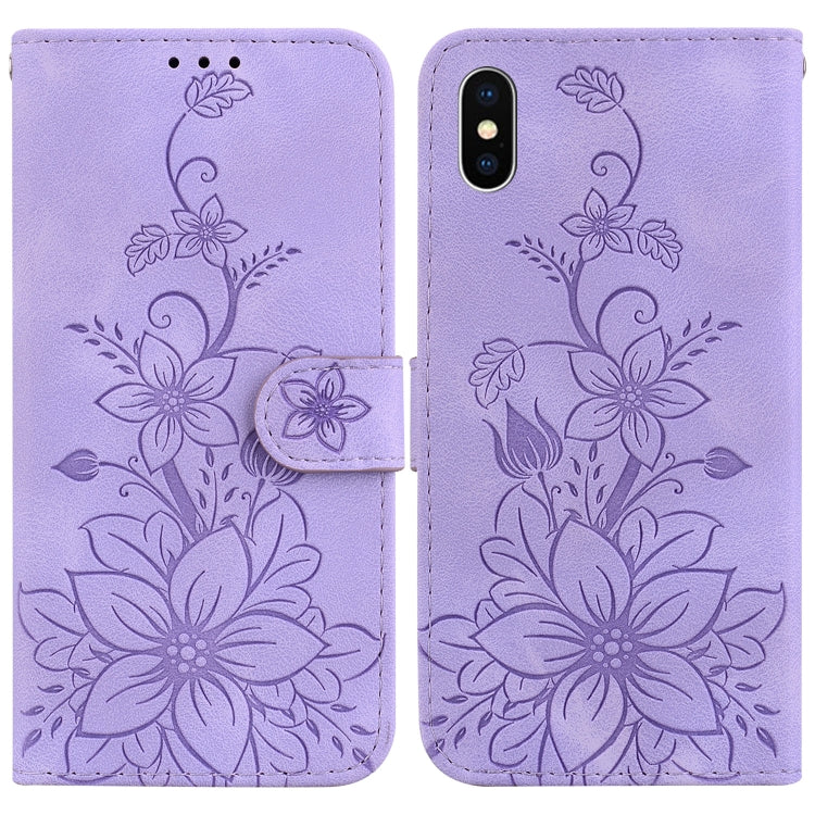 Funda de Cuero iPhone Xs / X Relieve Lily (Púrpura)