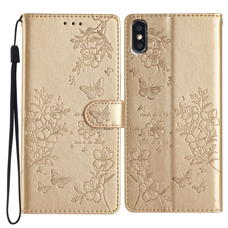 Funda para Teléfono iPhone Xs / X Cuero Relieve Flor de Amor y Mariposa (Dorado)