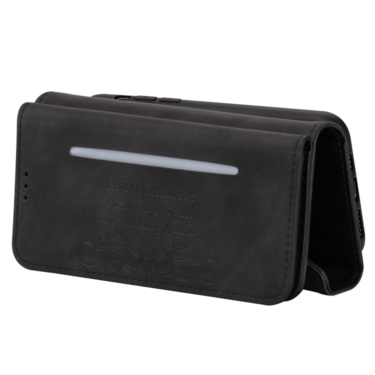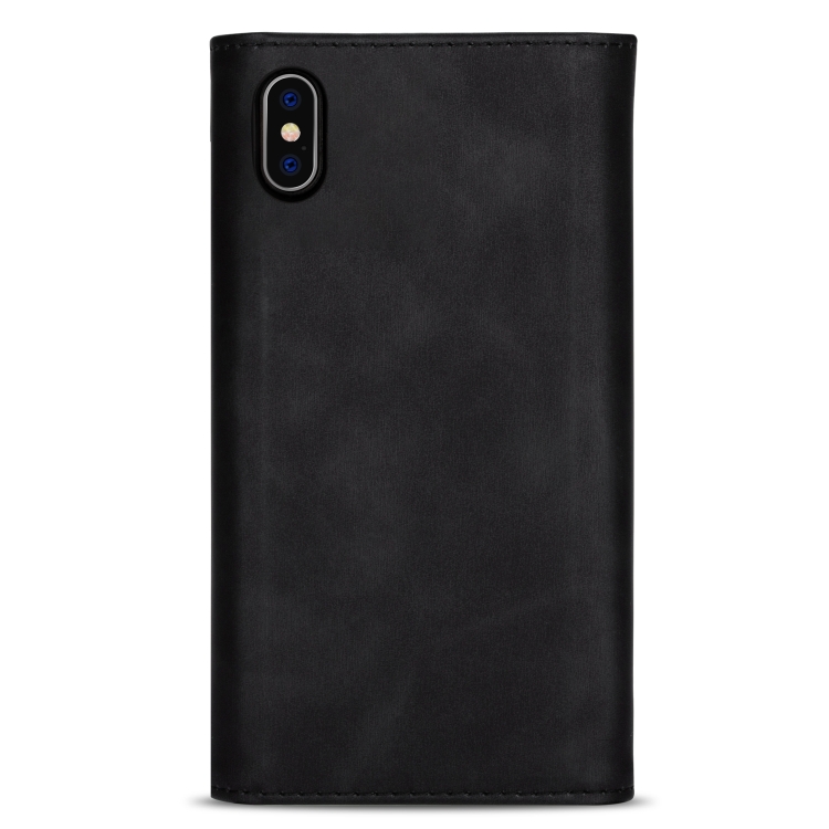 Funda de Cuero para iPhone Xs / X Skin Feel con Tapa Horizontal, Soporte, Ranuras para Tarjetas, Marco de Fotos y Cordón (Negro)