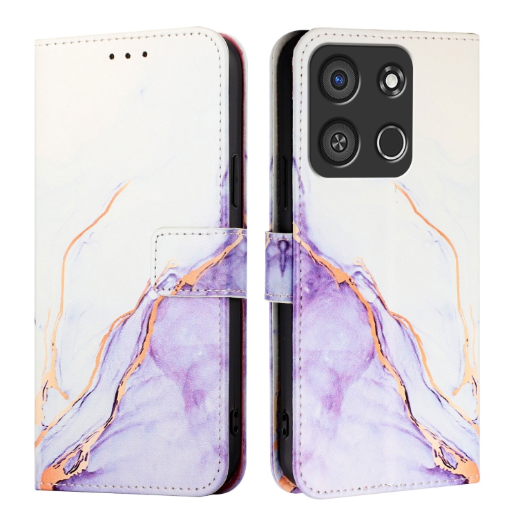 Funda para Itel A05S Pt003 de Cuero con Tapa y Patrón de Mármol (Blanco y Morado)
