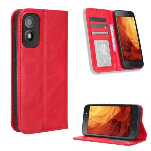 Funda de Cuero para Itel A18 con Hebilla Magnética y Textura Retro (Rojo)
