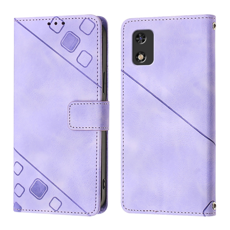 Funda de Cuero Skin Feel para Itel A23 Pro y A17 en Relieve (Púrpura Claro)