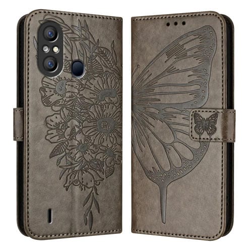 Funda de Cuero para Teléfono Itel A58 / A49 con Mariposa en Relieve (Gris)