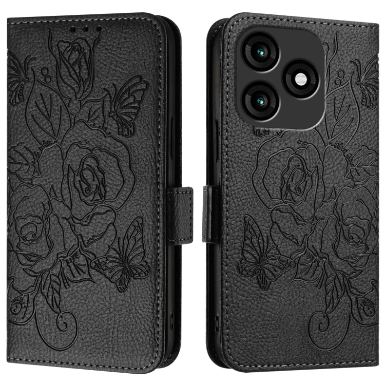 Funda para Itel A70 de Cuero Antirrobo RFID con Rosa en Relieve (Negro)