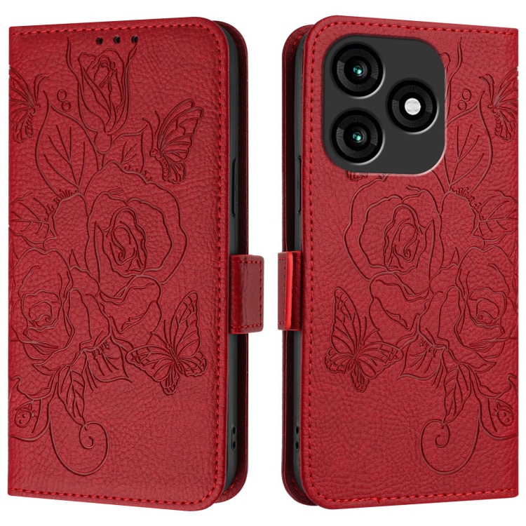 Funda para Teléfono Itel A70 Cuero Antirrobo RFID con Rosa En Relieve (Rojo)