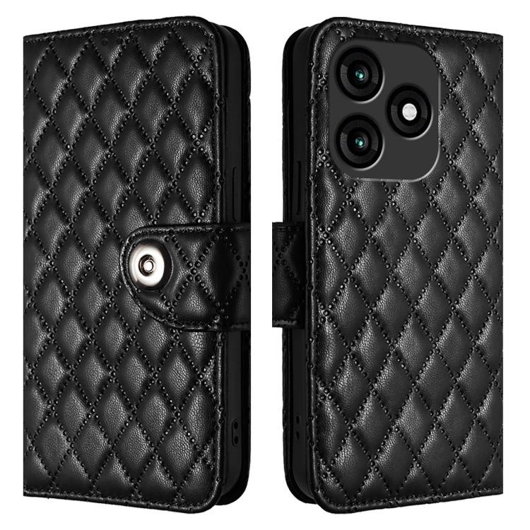 Funda para Itel A70 de Cuero con Tapa Textura Rómbica y Cordón (Negro)